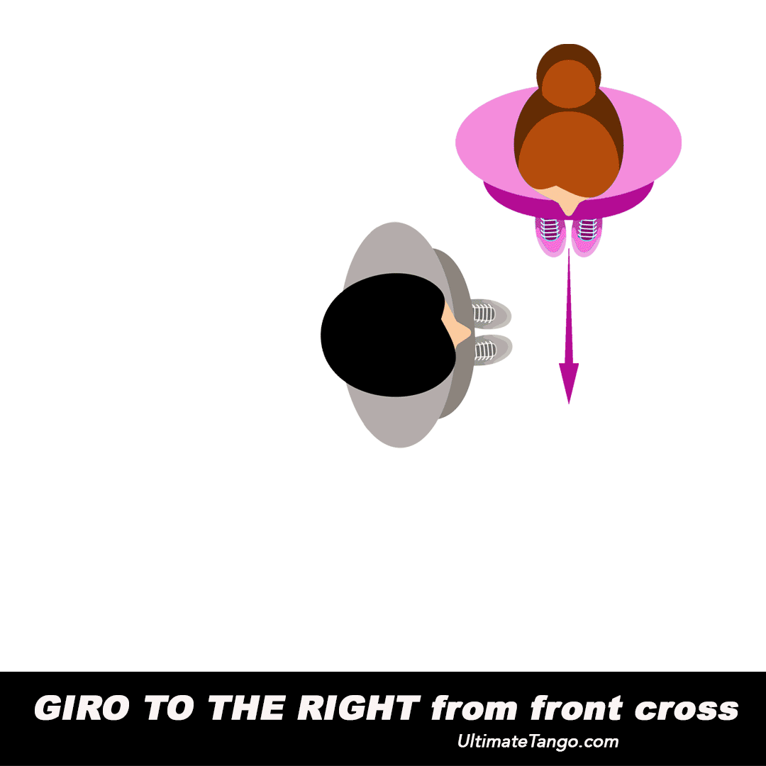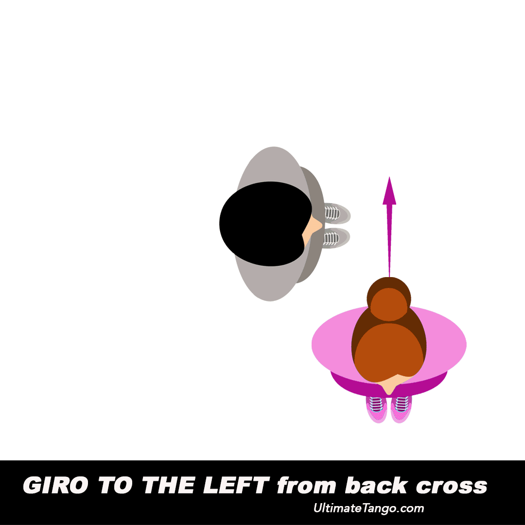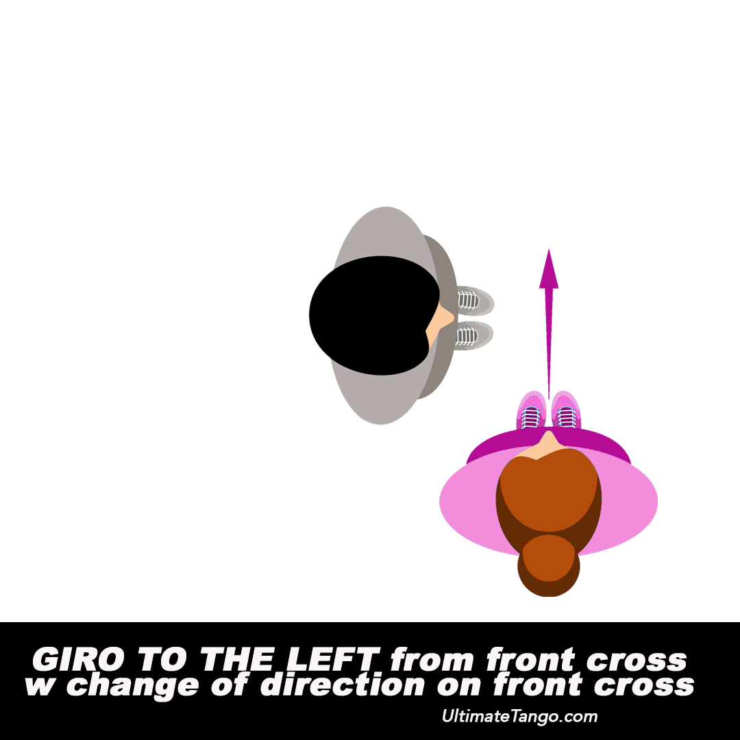 Translation? In tango language it will be stated as – giro to the left (or right) from forward cross with change of direction on forward cross. Sounds impressive – but now you know, it really is not that difficult.